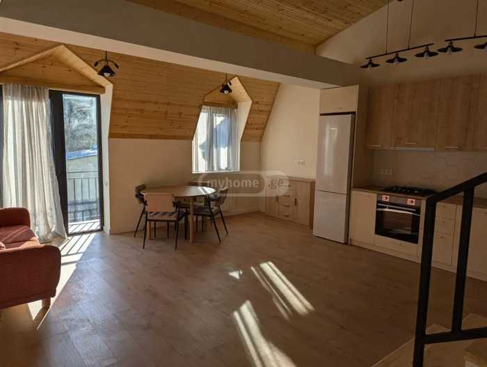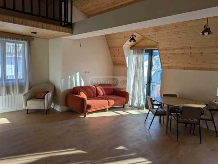 წყნეთში, ახალდაბის ქუჩაზე მდებარე ახალაშენებული სახლის პირველ სართულზე ქირავდება დუპლექსის ტიპის ბინა. სახლს აქვს კარგად გამწვანებული ეზო, რომელიც ებჯინება ტყეს, მოწყობილია საბავშვო მოედანი, აუზი, მოსასვენებელი ზონები. 112 კვ.მ. ფართი ბინა გეგმარებით მოიცავს: პირველ დონეზე სტუდიოს ტიპის მისაღებს, სმზარეულოს სასადილო ზონით, აბაზანა-ტუალეტს, კიბის უჯრედს. მეორე დონეზეა: ჰოლი, ორი იზოლირებული საძინებელი, აბაზანა-ტუალეტი, აივანი ეზოში გასასვლელით. ბინა ახალი გარემონტებულია და უზრუნველყოფილია ავეჯითა და ტექნიკით.