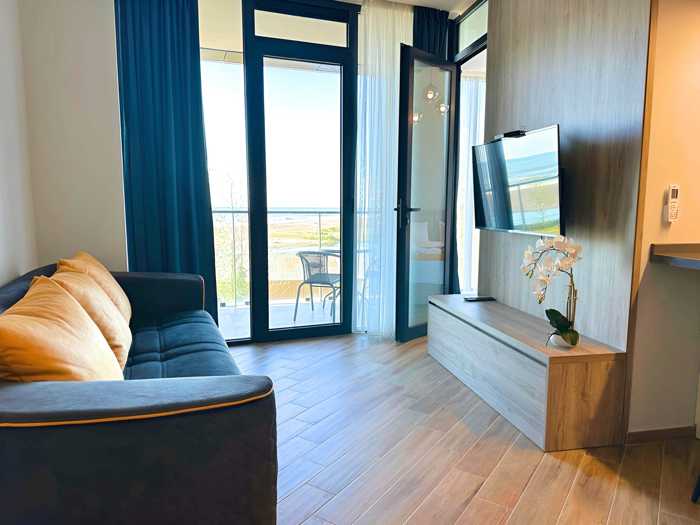 ქირავდება აპარტამენტი კვარიათში სასტუმროს ტიპის კომპლექს "sunset kvariati"-ში. კორპუსი არის ზედ ზღვაზე. აპარტამენტი უზრუნველყოფილია ყველა საჭირო ნივთით: (კონდენციონერი, ტელევიზორი, ინტერნეტი, სარეცხი მანქანა, ჭურჭელი, გაზქურა). აივანი ზღვის ხედით, ნომერში შეიძლება განთავსდეს 4 ადამიანი. (ფასები 1 კვირისა და მეტი დღეების რაოდენობის დაჯავშნის შემთხვევაში აკლდება)