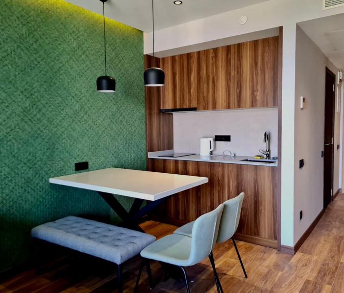 ქირავდება სეზონამდე სტუდიოს ტიპის ბინა ორბი რეზიდენსში, ბინა მდებარეობს 21 სართულზე ზღვის ულამაზისი ხედით. ბინაში არის ყველა საჭირო ავეჯი და ტექნიკა კომფორტული დასვენებისთვის.