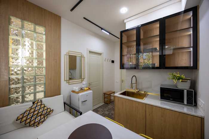 ბინა მდებარეობს რუსთაველის მეტროსთან ახლოს, სასტუმრო რუმსთან. აღჭურვილია ყველა საჭირო ტექნიკით;