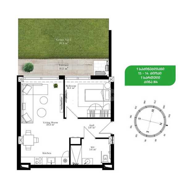 (!) მე აგენტი ვარ. (!) 🪴 იყიდება 1-ოთახიანი ბინა დიდი ტერასით და პირადი მწვანე ეზოთი Krtsanisi Villa Residence-ში, #კრწანისი. კორპუსი თითქმის მზად არის, შეგიძლიათ დაიწყოთ რემონტი. ლოკაცია 7 Grigol Volski St 14-15 კორპუსი ოთახები: 2 საძინებლები: 1 სველი წერტილი: 1 ფართობი: 76.9 კვ.მ სართული: 1/6 ბინის უპირატესობები: ▪️ დახურული კომპლექსი განვითარებული ინფრასტრუქტურით ▪️ ეკოლოგიურად სუფთა რაიონი ▪️ ტერასა და პირადი მწვანე ეზო გარდერობისა და საძინებლის გაზრდა შესაძლებელია — ვარიანტი მოცემულია სქემაზე. 140,000$ m² - 1821$