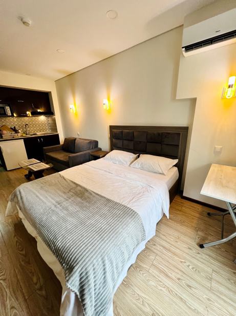 სტუდია Orbi Beach Tower შერიფ ხიმშიასნის ქ. 57 სტუდია 30 კვ.მ მე-9 სართული გვერდითი ხედი ზღვის ქინგ ზომის საწოლი WiFi, SMART-TV ელექტრო ღუმელი, მაცივარი, მიკროტალღოვანი ღუმელი, ჭურჭელი კონდიციონერი, სარეცხი მანქანა ლიფტი 6 სიჩქარით, დაცვის სისტემა ფართო გვერდითი ზღვის ხედით, პირველ ხაზზე. ახლოს არის ლეხ კაჩინსკის პარკი, ზღვა და ვაჭრობის ცენტრი Metro City.