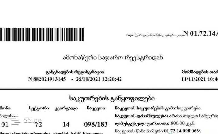 იყიდება არა სასოფლო სამეურნეო მიწის ნაკვეთი: ნომენკლატურა: მე-2 (II) კლასის ობიექტი, საცხოვრებელი ობიექტი - ერთბინიანი საცხოვრებელი სახლი! საუკეთესო ადგილზე, ალექსანდრე ღლონტის ქუჩა, N 37. საცხოვრებელ ზონაში.