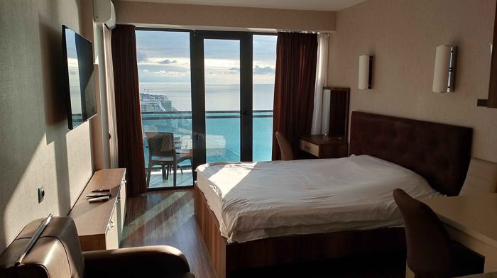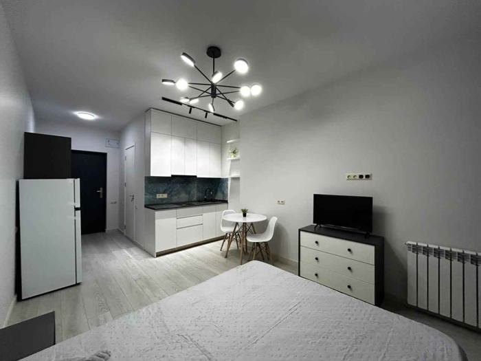 Next Apartments-ის კომპლექსში სტუდია ზღვის მხარეს ხედი. სრულად აღჭურვილი ავეჯით, ტექნიკით, ყველაფერი მათთვის, ვინც ცხოვრობს ან ქირავნობს: სავალი ზედაპირი, მაცივარი, ღუმელი, ჭურჭლის სარეცხი მანქანა, სარეცხი მანქანა. კონდიცირება და გაზის ცენტრალური გათბობა.