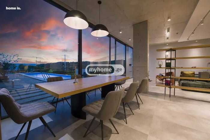 იყიდება თანამედროვე დიზაინის, ახალაშენებული, უცხოვრებელი სახლი კიკეთში 360 ° პანორამული ხედი ყველა ფანჯრიდან. საცხოვრებელი ფართი - 465 მ2 ტერასა - 262 მ2 მიწის ფართი - 3000 კვ/მ პროექტი მოიცავს 4 საძინებელს, ინდივიდუალური სველი წერტილებით და საგარდერობე ოთახებით ess кабинет ტექნიკური, დამხმარე და სამრეცხაო ოთახები იზოლირებული სამზარეულო მისაღები და სასადილო სივრცე სხვადასხვა ტიპის ტერასები გარე სამზარეულო ავტოსადგომი 3 მანქანაზე, სათავსო ოთახით და ელექტრო დამტენით Infinity აუზი - 74 მ2 სახლი მოწყობილი და აღჭურვილია განათება - FLOS საყოფაცხოვრებო ტექნიკა - Miele Georgia გრილი - MOTIF შემრევები - Bagno Design Tbilisi აბაზანის ფილები - ვენეტო დიზაინი/Veneto Deign , Belle Maison იატაკის საფარი - ვენეტო დიზაინი/Veneto Design ავეჯი - MOTIF აბაზანები - Villeroy & Boch • ვილეროი და ბოხი სახანძრო სისტემა ჭკვიანი სახლის სისტემა, მეტეოსადგური Sensors & Smart Technologies • სენსორები და ჭკვიანი ტექნოლოგიები ელექტრო საფარდეები