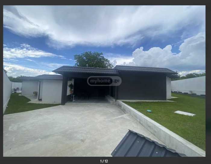 იყიდება საგურამოში, არასასოფლოსამეურნეო დანიშნულების მიწის ნაკვეთზე, ახალი აშენებული სამ ტერასიანი 1 სართულიანი სახლი 395კვ/მ 10 ოთახით, ყველა ოთახი ინდივიდუალური გასასვლელით ეზოში. ჰოლი, 5 საძინებელი ხუთივე ინდივიდუალური აბაზანით (ყველა სველი წერტილი ვიტრაჟიანი ფანჯრით) და საკუთარი გასასვლელით ეზოში, სტუმრის სველი წერტილი, სამრეცხაო ოთახი, ტექნიკური ოთახი, მისაღები ოთახი, სასადილო, სამზარეულო + დახურული სამზარეულო, გადახურული ტერასა და აუზი. შენობას გაკეთებული აქვს თბოიზოლაცია (დათბუნება), აქვს ალიუმინის ვიტრაჟები, საკუთარი არტეზიული ჭა (100მეტრი), ასევე შეყვანილია სოფლის წყალი, ცენტრალური კანალიზაცია, ცენტრალური გათბობა (იატაკის გათბობა სველი წერტილებში, მისაღებში, სამზარეულოში), საკაბელო ტელევიზია, WIFI ინტერნეტი, სიგნალიზაცია, კამერები, UPC მუდმივი კვება, რომელიც უზრუნველყოფს გათბობის, კამერების, ინტერნეტისა და რამოდენიმე ოთახის განათებას საჭიროების შემთხვევაში. ეზოში არის საცურაო აუზი 4/8-ზე, რომელსაც აქვს გათბობა და ღამის შიდა ნათება. ეზოში არის პარკირების სივრცე. სახლამდე მიდის ასფალტის გზა. სახლის წინ არის საბაშვო სკვერი. ფასი: 550000$
