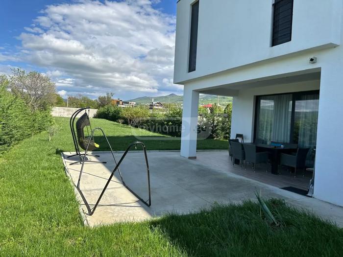 იყიდება ახალაშენებული ულამაზესი ვილა საგურამოში, სევსამორასთან. (არასასოფლო მიწა) არაჩვეულებრივი ხედებით, ექსკლუზიური ჭაღებით, აუზით, გამწვანებით, 5 საძინებელი. აქედან 2 მასტერბედრუმი, 4 სვ.წერტილი, დამხმარე ოთახები ( საქვაბე და სამზარეულოს დამხმარე ფართი) დიდი სამზარეულო და მისაღები ვიტრაჟებითა და ხედებით კავკასიონზე. 80მ2 ვერანდა ბუხრით. სამზარეულო აღჭურვილია ავეჯით და Bosch-ის ტექნიკით. სახლის უკან 400მ2 ეზო, სადაც სურვილისამებრ შეგიძლიათ მოაწყოთ კორტები, სტადიონი, ფანჩატური , ხეხილის ბაღი. ეზოს წინა მხარე გამწვანებელია, სარწყავი სისტემაც გამართული. აუზი აღჭურვილი დამატებითი დამხმარე 17 მ2 ოთახით.