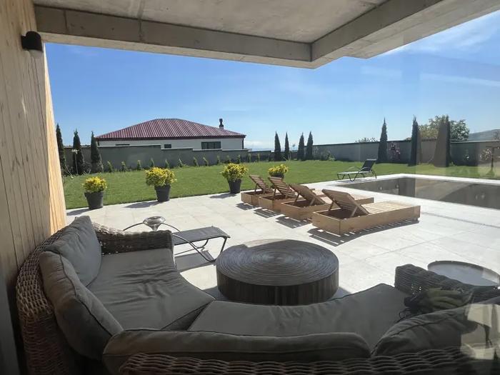 იყიდება ახალი აშენებული, 7 ოთახიანი კერძო სახლი შინდისში, შატო დე ვერესთან, ხედით თბილისზე, შინდისზე და წავკისზე. საცურაო აუზი 10 მ, უმაღლესი ხარისხის მასალით აშენებული. ავტოფარეხი 2 ავტომობილზე + 2 საპარკინგე ადგილი. გამწვანწბული ეზო 1200 კვმ სარწყავი სისტემით. დიდი მისაღები, გამოყოფილი ცალკე სამზარეულო, 4 საძინებელი, საგრდერობე ოთახი, 4 აბაზანა, კაბინეტი, საკუჭნაო და საქვაბე ოთახი.