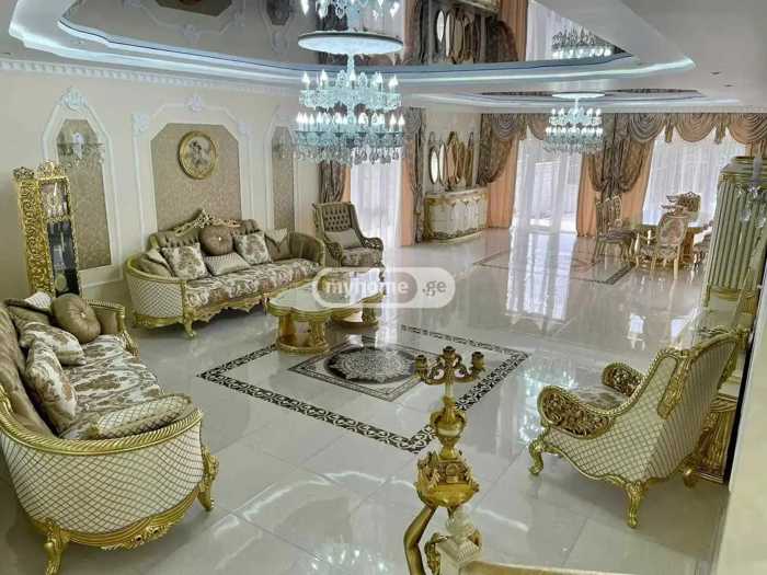 ბათუმის მახლობლად, დაბა ჩაქვში, ზღვის პირას იყიდება 3 სართულიანი ვილა ზღვის პანორამული ხედით. ვილა აღჭურვილია მაღალი ხარისხის გაერთიანებულ საემიროებში წარმოებული ავეჯით , აუზით, საუნით, ფიტნეს დარბაზით , ბილიარდის ოთახით, 4 საძინებელი, მისაღები ოთახის გადაშლილია 100კვ ზე, ვერანდა ულამაზესი ზღვის ხედით,ეზოში ფანჩატური სივრცე. ამ სტილის სახლს ახასიათებს ელეგანტურობა, სიმეტრიულობა, მაღალი კედლები და ვიტრაჟები. ასევე სახლში დაგხვდებათ ამ სტილისთვის დამახასიათებელი ანტიკვარული ნივთები, ქანდაკებები და იატაკსაგები. სახლში დამონტაჟებულია დაცვის სისტემა 10კამერით და სიგნალიზაციით. თითოეული სართულის საერთო ფართი (აივნით) 200 კვ ( I სართული 200კვ II სართული 200კვ III სართული 200კვ ჯამში სახლი არის 600კვ ეზოს საერთო ფართი 1000კვ. სახლი მდებარეობს ცენტრალურ გზაზე . ფასი 750 000$ დამატებითი დეტალებისთვის დამიკავშირდით ამ ნომერზე.
