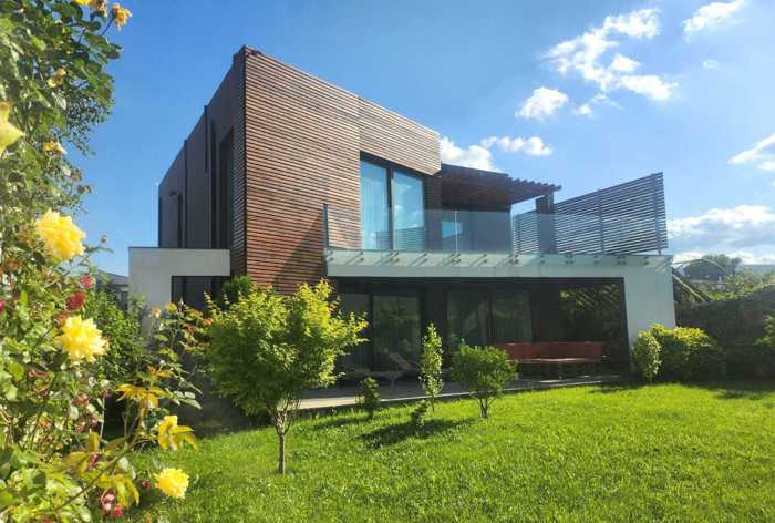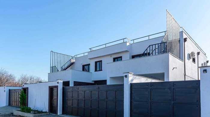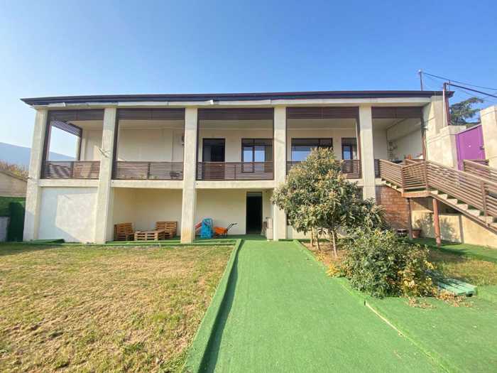 იყიდება ახალი აშენებული, დარეგისტრირებული და ექსპლუატაციაში შეყვანილი, თანამედროვე დიზაინის მქონე, კეთილმოწყობილი საცხოვრებელ დასასვენებელი კომპლექსი, რომელიც შედგება: 1- ორი იზოლირებული საცხოვრებელის სახლისგან 2.-10x5 საცურაო აუზი 3- ეზოში მდგარი დამხმარე შენობა ნაგებობა 4- ორი დამოუკიდებელი ავტოფარეხი საცხოვრებელი სახლი მოიცავს ორ იზოლირებულ ბინას (განლაგებული სარკისებრი პრინციპით) თითოეულ შედგება 4 საძინებლისგან, პირველ სართულზე დიდი მისაღებისგან (88კვ.მ) , ჩაშენებული იტალიური სამზარეულოთი, ყველა სახის საყოფაცხოვრებო ტექნიკით და მესამე სართულზე პანორამული ტერასით. ეზოში მდგარი დამხმარე შენობანაგებობა 120კვ.მ, შედგევა მარანისგან, სატრაპეზოსგან, ფიტნეს, საუნა და დამხმარე პერსონალის ოთახისგან.