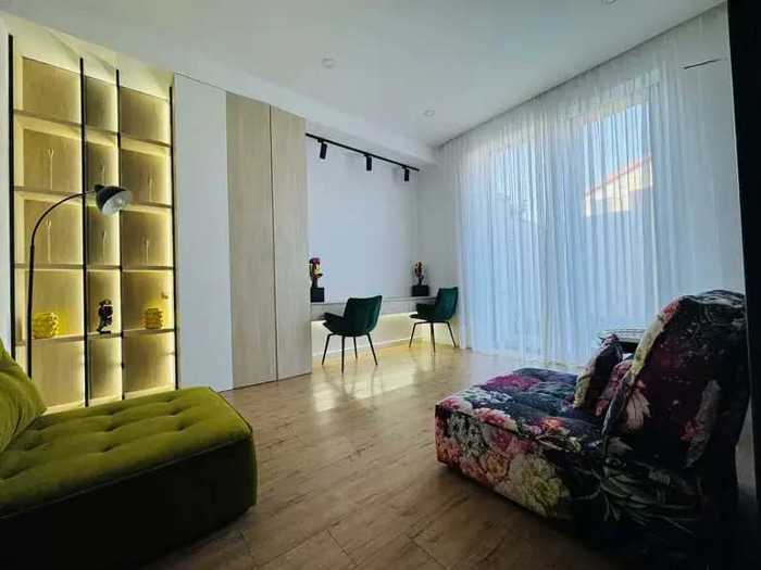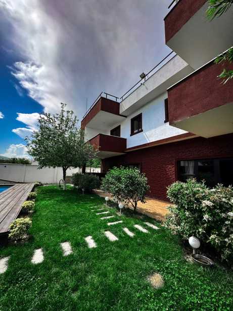 1. ორი იზოლირებული საცხოვრებელი სახლი 2. 10x5 საცურაო აუზი 3. ეზოში მდგარი დამხმარე შენობა ნაგებობა. საცხოვრებელი სახლი მოიცავს ორ იზოლირებულ ბინას (განლაგებული სარკისებრი პრინციპით) თითოეულ შედგება 4 საძინებლისგან, პირველ სართულზე დიდი მისაღებისგან (88კვ.მ) , ჩაშენებული იტალიური სამზარეულოთი, ყველა სახის საყოფაცხოვრებო ტექნიკით და მესამე სართულზე პანორამული ტერასით. ეზოში მდგარი დამხმარე შენობა-ნაგებობა 120კვ.მ, შედგება მარანისგან, საქეიფო ოთახისგან, ფიტნესი , სველი წერტილი და დამხმარე პერსონალის ოთახი. ჭერი სიმაღლე 3.5კვმ ეზოს ფართი 600კვ.მ სეული ფართი 1000კვ.მ სართულები სულ 3 ოთახები სულ 15 საძინებელი 8 სველი წერტილი სულ7 აივანი სულ4 ტერასა 212 კვ.მ