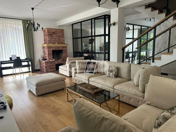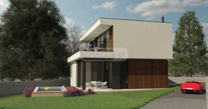 თანამედროვე კერძო სახლი პრემიუმ ლოკაციაზე მდებარეობა: ნაკვეთი მდებარეობს მთაწმინდიდან 14 წუთის სავალზე. უკანა მხარეს ესაზღვრება ხევი 100-წლიანი მუხებით, რაც ქმნის და ბუნებრივ გარემოს. შესაძლებელია მეზობელი ნაკვეთის მიერთებაც. პროექტი: დამტკიცებული გრგ-ით, ორსართულიანი სახლი + ცალკე მდგომი აუზი. I სართული: მისაღები, სამზარეულო, 2 საძინებელი, ს/ც, ტექნიკური ოთახი II სართული: მასტერ-ბედრუმი, ს/ც, მისაღები, პანორამული ვერანდა შენობა 256 მ² საზაფხულო სივრცე 90 მ² ნაკვეთი 743 მ² ვიტრაჟები უზრუნველყოფს ბუნებრივ განათებას და ფართეს. სახლს აქვს ორი შესასვლელი.