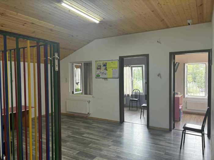 იყიდება კერძო სახლი 337.7 მ² ფართობით და 750 მ² გამწვანებული ეზოთი. სახლის გარშემო არის ბაღი,სადაც შეგიძლიათ მშვიდად დაისვენოთ. ეზოში მოწყობილია მისასვლელი გზა და მეტალის ჭიშკარი, რაც უზრუნველყოფს უსაფრთხოებასა და კომფორტს. ინტერიერში განთავსებულია მისაღები და სასადილო ოთახები, დიდი ფანჯრებითა და მყუდრო ატმოსფეროთი. სახლი აღჭურვილია სამზარეულოთი, . მინის კარები და დიდი ფანჯრები უზრუნველყოფს ბუნებრივ განათებას. ეს სახლი იდეალურია მათთვის, ვისაც სურს სიმშვიდე და ბუნებასთან სიახლოვე.ამჟამად ფუნქციონირებს საბავშვო ბაღი