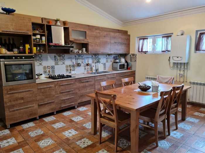 იყიდება სახლი (ფერმწერთა ქუჩა). დასახლებულ უბანში, დასრულებული ინფრასტრუქტურით. სახლამდე მიდის ასფალტირებული გზა, კაპიტალური ღობე, ელექტრო ჭიშკარი. პირველი სართული: ღია მისაღები სივრცე, სამზარეულო, საგარდერობე, სველი წერტილი, ტექნიკური ოთახი ( სათავსო, ვიდეო, დაცვის სისტემები ) პირველი სართულიდან გავდივართ გამწვანებულ ეზოში: გაზონი, დეკორატიული მცენარეები, ხეხილი. მეორე სართული: 1 აივანი, 4 საძინებელი, 2 სველი წერტილი! მესამე სართული 38კვ.მ საზაფხულო ფართი(ვერანდა). სახლი აღჭურვილია: თანამედროვე ავეჯით და ტექნიკით.