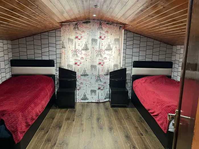 სახლი აშენებულია 263 კვ.მ მიწაზე და იკავებს 75 კვ’მ. სახლს აქვს 3 საძინებელი სამივე სველი წერტილით,სტუდიოს ტიპის ზალა,36კვ.მ სარდაფი,50კვ.მ ტერასა და თანაბარი მასშტაბის ეზო ორივე მხრიდან.გაზი და დენი სახლში შეყვანილია,წყალი კი ჭიშკრამდე კედლები აშენებულია 30 ანი ბლოკით და გაკეთებული აქვს დათბუნება.უახლოესი მაღაზია ფეხით 10 წუთში, არის ძალიან მშვიდი და წყნარი უბანი.