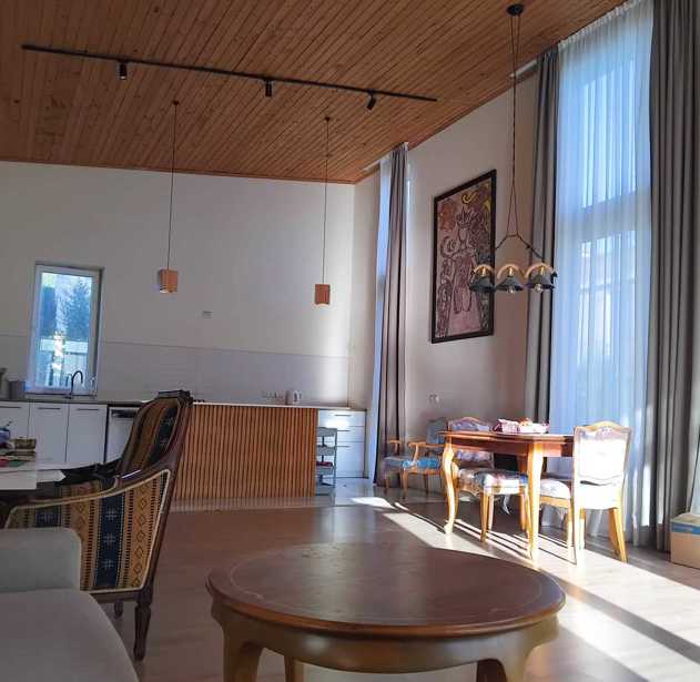 სასწრაფოდ იყიდება კრწანისში, თბილისიდან 4 კმ-ში კაპიტალური სახლი ახალი აშენებული 164 კვ მ, ვერანდა 18 კვ, მიწა 700. რუსთავის ავტობანის დასაწყისიდან მარჯვნივ, სუფთა ჰაერზე. გარემონტებული, საკუთარი წყლის სისტემა, მოპირკეთებული და გაშენებული მწვანე ეზო. ღობე. პიცის ბუხარი. სახლს აქვს 2 სათავსო გარეთ და შიგნით ყველა კომუნიკაცია მოწესრიგებულია. 3 საძინებლით + 1 პატარა. 2 სვ წერტილი. სასტუმრო ოთახი 50 კვ, საძინებლები 16 კვ, ჭერი 5 მეტრი. 400 მეტრში ბაღი სკოლა, მარკეტები, ავერსი, გაჩერება. ფასი $145000, საბუთები წესრიგშია.