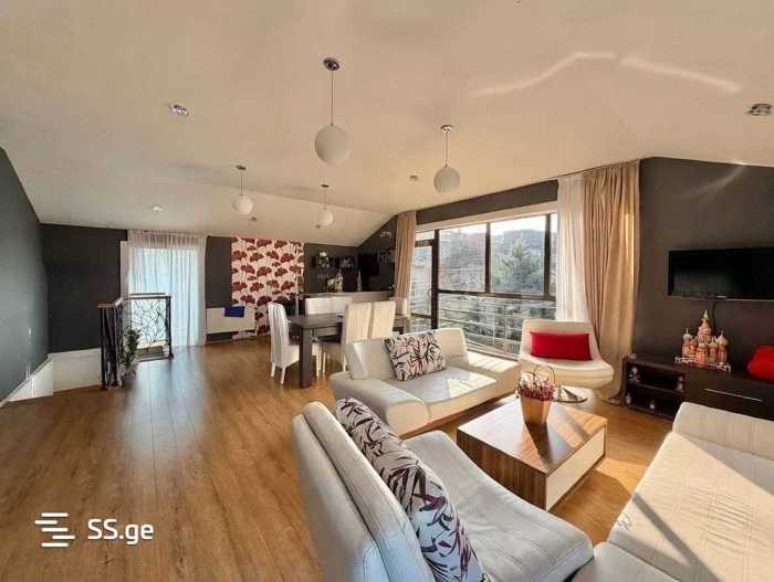 იყიდება შესანიშნავ ლოკაციაში — ნამდვილად გამორჩეული, სრულად გარემონტებული თანამედროვე სახლი, რომელიც სახლში შესვლისთანავე კომფორტის შეგრძნებას გიქმნით. საცხოვრებელი ფართობი შეადგენს 240 კვ.მ-ს, მიწის ნაკვეთი — 210 კვ.მ. ეს ნათელი და ჰაეროვანი ორსართულიანი ახალი შენობა მოიცავს სამ ფართო საძინებელს, ღია ტიპის მისაღებსა და სასადილო სივრცეს, რომელიც დიდი პანორამული ფანჯრების მეშვეობით ბუნებრივი სინათლით არის სავსე, ასევე გთავაზობთ შთამბეჭდავ ხედებს მთებსა და გამწვანებულ გარემოზე. მაღალი ხარისხის რემონტი თვალშისაცემია ყველა დეტალში: ლამაზი ხის იატაკი, თანამედროვე განათება, ელეგანტური ჩაშენებული სამზარეულო, კომფორტული საძინებლები, თანამედროვე საშხაპე აბაზანები, ცენტრალური გათბობა, კონდიცირება, მაღალსიჩქარიანი Wi-Fi, Smart TV, მყუდრო აივანი — იდეალური დილის ყავისა თუ საღამოს დასვენებისთვის, ასევე ლიფტი სრული კომფორტისთვის. სახლი სრულად მზად არის საცხოვრებლად — დამატებითი სამუშაოები არ არის საჭირო; უბრალოდ მოიტანეთ ავეჯი და დაიწყეთ ცხოვრება. გარემო მშვიდი და პირადულია, თუმცა ახლოს მდებარეობს საზოგადოებრივი ტრანსპორტი, მაღაზიები, კაფეები, პარკები და ყოველდღიური საჭიროების ყველა ობიექტი. იდეალურია ოჯახისთვის, რომელიც აფასებს სივრცესა და ხარისხს, ასევე როგორც ჭკვიანი საინვესტიციო შესაძლებლობა პერსპექტიულ უბანში მაღალი ზრდის პოტენციალით.