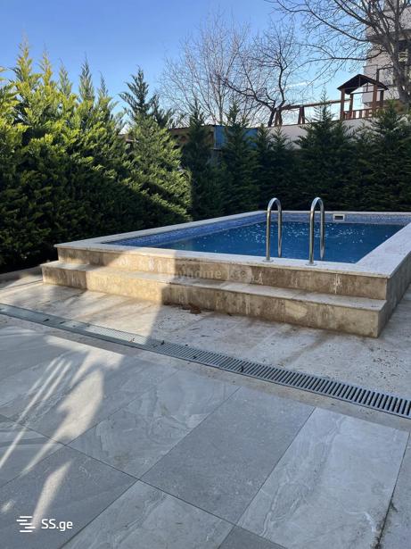 იყიდება 5 ოთახიანი კერძო სახლი, 4 საძინებლით, დიდი მისაღებით, იზოლირებული სამზარეულოთი, 2 სველი წერტილით, 2 აივნით (ყველა ოთახის გადის აივანზე) და 1 ვერანდით. სახლი აშენებული, გარემონტებული და მოპირკეთებულია ეკოლოგიურად სუფთა მასალით. აქვს იტალიური კრამიტის გადახურვა, ალუმინის კარ-ფანჯარა, კედლები ამოყვანილია „იტონგის“ ბლოკით, იატაკი მოპირკეთებულია ნატურალური ევროპული ხის პარკეტით. სახლის პირველ სართულზე განლაგებულია: სამზარეულო, მისაღები, 1 საძინებელი, საპირფარეშო და საქვაბე ოთახები. სახლის მეორე სართულზე განლაგებულია: 3 საძინებელი და საპირფარეშო. სახლს ასევე აქვს მანსარდი ერთი დიდი ოთახით და საკუჭნაო ოთახით. ეზო იყოფა 2 ნაწილად: წინა და უკანა ეზო. წინა ეზოში არის 3 მანქანის პარკინგის ადგილი და კალათბურთის სათამაშო სივრცე. უკანა ეზოში არის კაპიტალურად მოწყობილი ბასეინი (წყლის გათბობის სისტემის ჩათვლით). ბასეინის სიღრმე 1.5 მ, სიგრძე 7 მ, სიგანე 4 მ.. ბასეინის პერიმეტრი მოპირკეთებულია ტრავერტინის ქვით, ხოლო ღობის გასწვრივ გაშენებულია ე.წ. „გოლდ რაიდერის“ ჯიშის ნაძვი (ჯამში 60 ძირი).