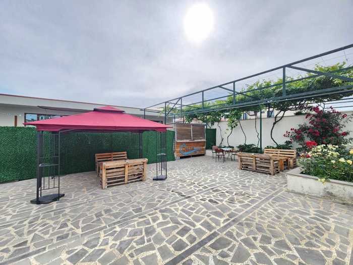 არის ახალი აშენებული, ქირავდება დღიურად და გათვლილია სხვადასხვა ღონისძიებებისთვის. 1. ხმაირზე შეზღუდვა არ გვაქვს 2. გთავაზობთ ფურშეტს მომსახურებას 3. აპარატურას 4. მაგიდას და სკამებს 5 დიჯეის, ბარმენის, ანიმატორის და მომსახირე პერსონალის მომსახურებას ფასი მითითებულია 15 სტუმრამდე. 15 სტუმრის ზემოთ ფასი იზრდება
