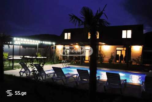 ქირავდება დღიურად ახალაშენებული ორსართულიანი სახლი აუზით. ეზოს ფართი 1100კვ.მ. ასევე ამ სივრცეში დგას 120 კვ.მ დამოუკიდებელი შენობა(მისაღები, კლუბი, ჰოლი) ევრორემონტით, ცენტრალური გათბობით, ვერანდით (30 კვ.მ)პარკინგით და კარგი ხედით. ტექნიკა: სარეცხის მანქანა, ჭუეჭლის სარეცხი მანქანა, მძლავრი ,,დინამიკი,, ეზოს განათება გირლიანდები, დიდი და პატარა მაყალი (გრილი ) შამფურები. ადგილზე დაგხვდებათ ყველა საჭირო ინვენტარი ნებისმიერი სახის წვეულებისთვის: დაბადებისდღე, კოპრორატიული, ქორწილი და ა.შ ფასი იცვლება დღეებისა და რაოდენობის მიხედვით