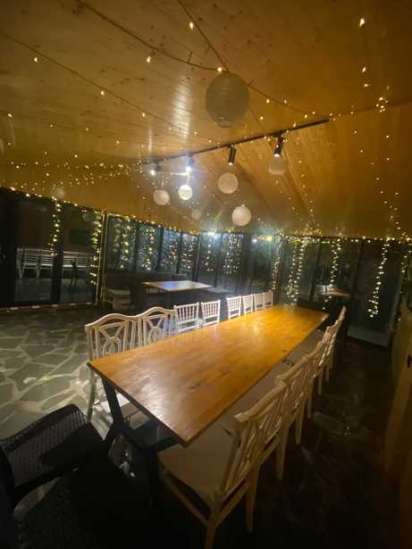 არის ახალი აშენებული, ქირავდება დღიურად და გათვლილია სხვადასხვა ღონისძიებებისთვის. 1. ხმაირზე შეზღუდვა არ გვაქვს 2. გთავაზობთ ფურშეტს მომსახურებას 3. აპარატურას 4. მაგიდას და სკამებს 5 დიჯეის, ბარმენის, ანიმატორის და მომსახირე პერსონალის მომსახურებას ფასი მითითებულია 15 სტუმრამდე. 15 სტუმრის ზემოთ ფასი იზრდება