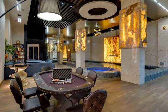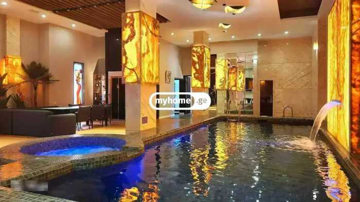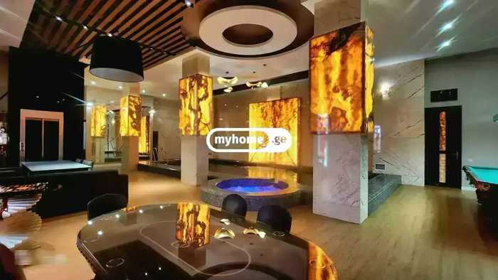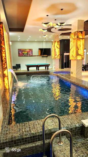 ქირავდება მთლიანი კომპლექსი. ფასში შედის: დახურული აუზი, ჯაკუზი, ფინური საუნა, რუსული ბილიარდისა და პოკერის პროფესიონალური მაგიდები, დინამიკი 2 კარაოკე მიკროფონით, მოსასვენებელი სივრცე, 4 სასტუმროს ნომერი (8 სტუმარი) 2 პანორამული ლიფტით და საზაფხულო ტერასა, სადაც განთავსებულია გარე ჯაკუზი და ავეჯი. გასართობი სივრცე გათვლილია 15 ადამიანზე, ფურშეტის შემთხვევაში ეტევა 20- 25 სტუმარი, ხოლო 4 საძინებელში 8 სტუმარი თავსდება. სურვილის შემთხვევაში კომპლექსში გვაქვს მენიუები, მზარეულის და მიმტანის მომსახურება. სტუმრების მიღება შესაძლებელია წინასწარი შეკვეთით.