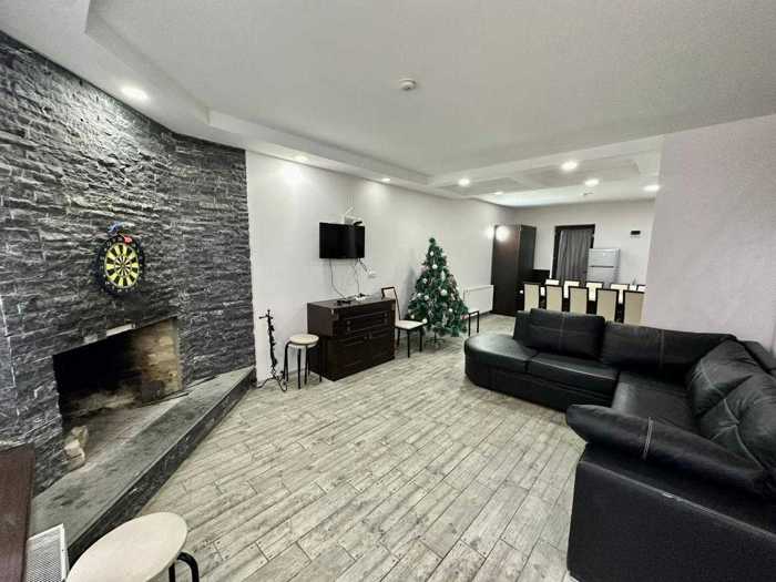 ქირავდება დღიურად საოჯახო სასტუმრო ბაკურიანში მისამართი: ბაკურიანი, ბორჯომის რაიონი, სტატუსი: სასტუმრო სართული: 2 ფართი: 420 მ² ოთახები: 12 მდგომარეობა: ახალი გარემონტებული სასადილო და არის საერთო სარგებლობის სამზარეულო, სადაც სტუმრებს თავად შეუძლიათ მოამზადონ კერძები აღჭურვილია ყველა ინვენტარით 40 ადამიანზე.ეზოს ფართი შეადგენს 550 კვ.მ. ფასი: 500 ლარი