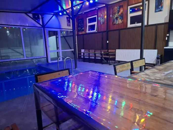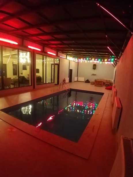 სახლი მდებარეობს თბილისის შემოსასვლელში მცხეთის მხრიდან, აღმაშენებლის ხეივნის დასაწყისში, მუხათგვერდის აგარაკები. ფასი იცვლება კვირის დღეებისა და სტუმართა რაოდენობის მიხედვით. მუსიკაზე შეზღუდვა არ გვაქვს ჩვენი დინამიკით შეძლებთ ისარგებლოთ მთელი ღამე 3 საძინებლით დახურული აუზით რომელიც თბება 38 გრადუსამდე , გვაქვს დიდი საცეკვავო დარბაზი 1000 ვატიანი ბერინგერის დინამიკით, რომლითაც შეგიძლიათ სარგებლობა მთელი ღამის განმავლობაში კლუბური განათებით დიდი ლამაზი ეზოთი და ტერასით. მაქსიმუმ 50 ადამიანზე გათვლილი სივრცე; დახურული აუზი (თბება 35 გრადუსამდე); 3 საძინებელი + გასაშლელი დივნები; დიდი საცეკვაო ჰოლი განათებებით; მისაღები, სამზარეულო, დიდი ეზო; დინამიკი ხმაურზე არ გვაქვს არანაირი შეზღუდვა; მაყალი და შამფურები; შესვლა: 15:00 გასვლა: 12:00 (მომდევნო დილით) ფასი 800ლ შაბათ-კვირას-1000