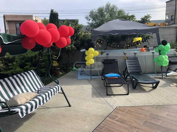 ქირავდება კერძო სახლი წვეულებებისთვის მისაღები ოთახი (80 კვ. )სამზარეულო, ჰოლი, სველი .წერტილი. საერთო ფართი 140კვ.მ ადგილზე დაგხვდებათ მე-11 და მე-12 ფოტოზე არსებული დეკორაციები