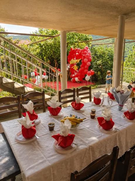 ადგილზე დაგხცდებათ : დარბაზი გათვლილი 10 დან 80 სტუმრამდე ,დიდი მონიტორი , დიდი დინამიკი, დისკო განათებები , მიკროფონები, კარაოკე , კონდიციონერი, სამზარეულო აღჭურვილი საჭირო ინვენტარით, ერთი საძინებელი. ასევე გვაქ ულამაზესი ვერანდა და ეზო. ფასი დამოკიდებულია სტუმრების რაოდენობაზე. 10 სტუმრის ფასი 450
