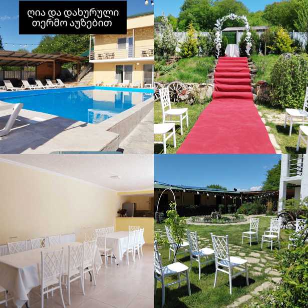ქირავდება სიონში ტყის პირას აგარაკი 12საძინებელი ინდ. სველი წერტილებით, ღია და ხურული თერმო აუზებით, საუნა, ღია და დახურული საქეიფო სივრცეები ბუხრით, ტენისი, გმწვანებული ეზო, დინამიკი, სრული ინვენტარი 40პერსონაზე. სურვილისამებრ მენიუს და გადაღების დამატებაც შესაძლებელია. მინიმუმ 10 პერსონაზე 600ლარი, ჯგუფებზე შესაძლებელია შეღავათი