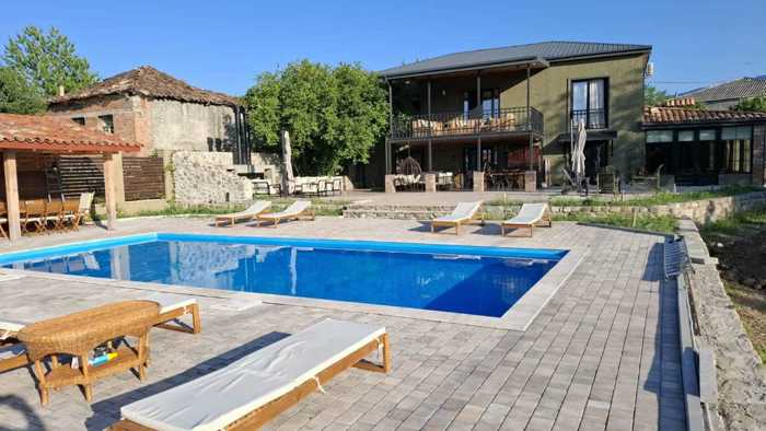 ქირავდება კერძო სახლი სოფელ რუისპირში თელავიდან 5 კმ-ში ქირავდება ახალი გარემონტებული, კეთილმოწყობილი კერძო სახლი, სრულად აღჭურვილი ყველა საჭირო ტექნიკითა და ინვენტარით. საერთო ფართობი: 3 000 კვ.მ მიწის ნაკვეთი ძირითადი საცხოვრებელი სახლი: • 2 დიდი მისაღები ოთახი ბუხრით • 3 საძინებელი • 3 სველი წერტილი • სამზარეულო • სათავსო • 2 დიდი ტერასა ულამაზესი ხედებით ეზო: • საცურაო აუზი (5×11 მ) • სველი წერტილი • დიდი ბუხარი სტუმრების პატარა სახლი: • დიდი ვერანდა • ერთი დიდი ოთახი 4 საწოლით • სველი წერტილი ფასი დამოკიდებულია ქირავნობის ვადაზე და სტუმრების რაოდენობაზე