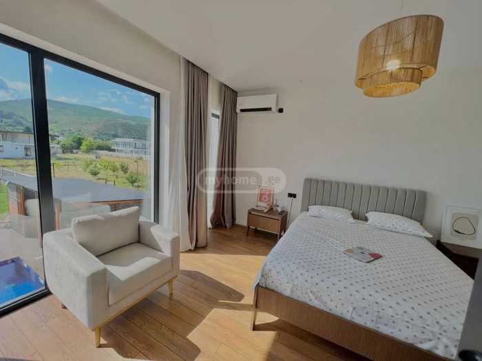 ქირავდება ახალაშენებული კერძო სახლი თბობადი აუზითა და დიდი გამწვანებული ეზოთი ქირავდება ახალი, თანამედროვე და სრულად გარემონტებული 2-სართულიანი კერძო სახლი არასტანდარტული პროექტით, რომელიც გაერთიანებულია კომფორტსა და ბუნებასთან სიახლოვეს. მდებარეობს მშვიდ და გამწვანებულ გარემოში. სახლის ფართი: 250 მ² ეზო: 1500 მ² 🛏 ოთახი: 7 (4 საძინებელი) 🛁 სველი წერტილები: 3+ ჭერის სიმაღლე: 3 მ მახასიათებლები: სტატუსი: ახალაშენებული მდგომარეობა: ახალი გარემონტებული პროექტის ტიპი: არასტანდარტული გათბობა: ცენტრალური გათბობა ცხელი წყალი: ცენტრალური გათბობა აივანი: 2 აივანი / 60 მ² ავეჯი: საწოლები, დივანი, მაგიდა, სკამები სამზარეულო და ტექნიკა: სრულად აღჭურვილი – გაზის/ელექტრო ქურა, ღუმელი, მაცივარი, სარეცხი მანქანა, ჭურჭლის სარეცხი მანქანა კონდიციონერი: კი ბუხარი: კი გრილი და ფანჩატური: ეზოში ეზოს განათება და ხეხილი აუზი: თბობადი აუზი, ფანჩატურით, ინდივიდუალური სველი წერტილითა და ღია დუშით ვერანდა და მისაღები ოთახი სათავსო სიგნალიზაცია და დაცვა ინტერნეტი და ტელევიზია ბუნებრივი აირი, წყალი, კანალიზაცია, ელ. ენერგია შემოღობილი ეზო და ჭიშკარი