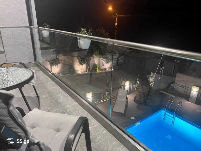 ქირავდება ახალი აშენებული, 7 ოთახიანი კერძო სახლი შინდისში, შატო დე ვერესთან, ხედით თბილისზე, შინდისზე და წავკისზე. საცურაო აუზი 10 მ, უმაღლესი ხარისხის მასალით აშენებული. ავტოფარეხი 2 ავტომობილზე + 2 საპარკინგე ადგილი. გამწვანწბული ეზო 1200 კვ.მ სარწყავი სისტემით. დიდი მისაღები, გამოყოფილი ცალკე სამზარეულო, 4 საძინებელი, საგრდერობე ოთახი, 4 აბაზანა, კაბინეტი, საკუჭნაო და საქვაბე ოთახი.