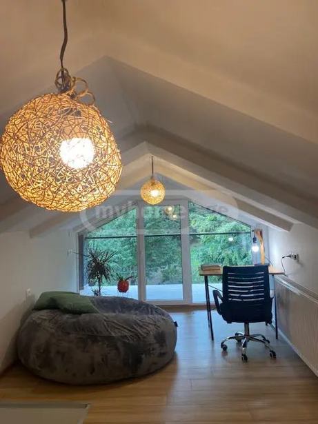 ქირავდება მყუდრო სახლი წყნეთის ახალდაბაში – ბუნების შუაგულში, ქალაქიდან მხოლოდ 15 წუთში ორ სართულიანი, მყუდრო, ოთხსაძინებლიანი სახლი წყნეთის ახალდაბაში, ტყის პირას. ბაგებიდან სახლამდე მანქანით გზას მხოლოდ 15 წუთი სჭირდება – იდეალურია მათთვის, ვისაც სურს ბუნების სიმშვიდე, სუფთა ჰაერი და ამავდროულად ქალაქთან სიახლოვე სახლის ძირითადი მახასიათებლები: პირველ სართულზე განთავსებულია სამი საძინებელი, ორი სველი წერტილი, მისაღები ოთახი, სამზარეულო და ვერანდა – იდეალურია დიდი ოჯახისთვის. ერთ-ერთი სველი წერტილი განთავსებულია მთავარ საძინებელში, რაც დამატებით კომფორტს ქმნის. მეორე სართული არის სხვენი (ჭერის სიმაღლე 2მ), სადაც მოწყობილია მრავალფუნქციური სივრცე სამუშაოდ, დასასვენებლად, განტვირთვისთვის და ძილისთვის, ასევე აქვს პატარა აივანი, საიდანაც იშლება ულამაზესი ტყის ხედი. ვერანდა და დიდი, გამწვანებული ეზო შესანიშნავი ადგილია მზიანი ამინდით და სუფთა ჰაერით დასასვენებლად. დასადგამი აუზი (4მ x 2მ) იდეალური განტვირთვა ზაფხულის ცხელ დღეებში ავტოსადგომი გათვლილია 2 ავტომანქანზე ინტერნეტი, ტელევიზია, ცენტრალური გათბობა და კონდიციონერი – ყველა საჭირო კომფორტი ერთ სივრცეში. ტექნიკა და აღჭურვილობა: ჭურჭლის სარეცხი მანქანა სამოსის სარეცხი მანქანა მაცივარი ტელევიზორი ყავის აპარატი Airfryer პროექტორი ეზოს გრილი იდეალურია ოჯახური ან მეგობრული საღამოებისთვის სახლი მეგობრულია შინაური ცხოველებისადმი ქირავდება მინიმუმ 1 წლით და მეტი ვადით