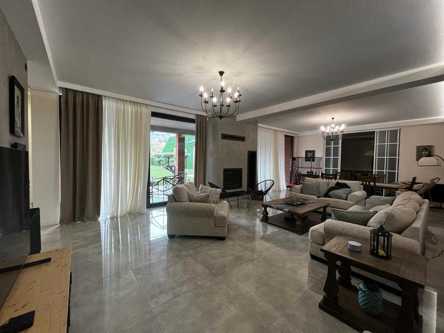 ქირავდება ულამაზესი სახლი, 2 შესასვლელი კარით, 5საძინებლით, 3სველი წერტილით, საგარდერობე ოთახებით, კაბინეტით, დახურული აუზით( ფილტრაციისა და გათბობის სისტემით), მინუს სართულზე კეთილმოწყობილი სარდაფითა და დამატებითი საძინებლით( სველი წერტილითურთ), ულამაზესი, 2300 კვ მ ხეხილიანი ეზოთი.