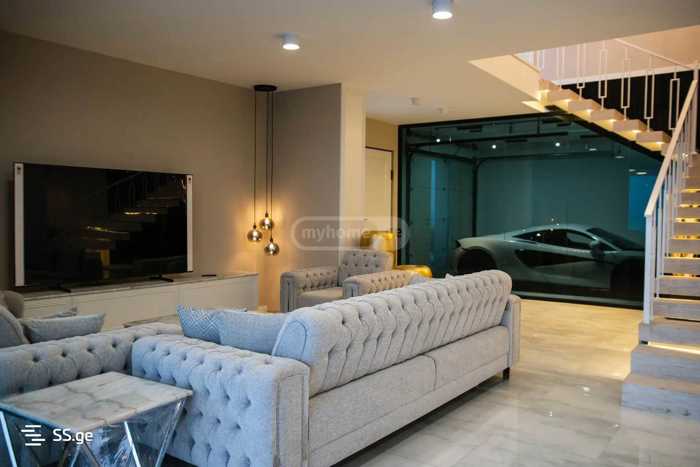 სახლის საერთო ფართი 608 კვ მათშორის 205 კვ საცხოვრებელი (5 საძინებელი, 4 სველი წერტილი, სათავსო, სამზარეულო და მისაღები ოთახი), 252 ტერასები, მიწისქვეშა ავტოსადგომი 111 კვ (4 მანქანის სადგომი), აუზის ფართობო 39 კვ (10მ/4მ-ზე) მ