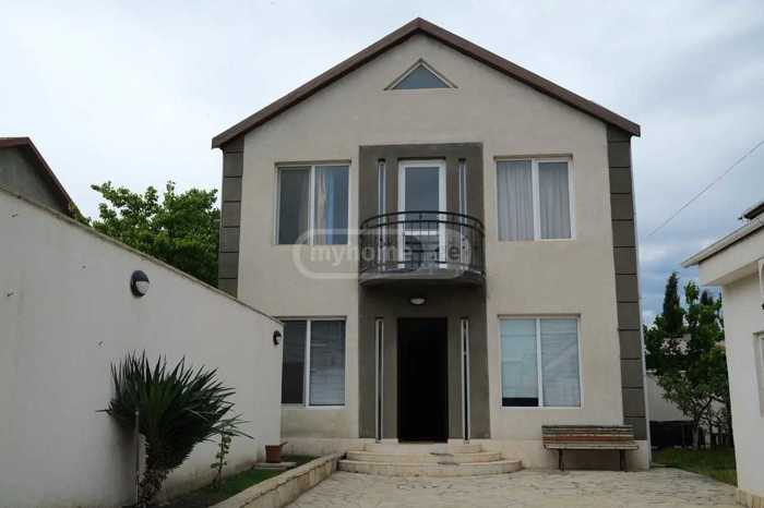 ცენტრ. გზიდან 100 მეტრში 2 სართულიანი კერძო სახლი 125 კვ.მ, ეზო 300 კვ.მ, 1 სართ: იზოლირებული სამზარეულო, მისაღები ოთახი და აბაზანა-ტუალეტი, 2 სართ: 3 საძინებელი, 2 აივანი, ტუალეტი, ცენტრალური გათბობით, ეზოში იზოლირებულად დგას 50 კვ.მ სახლი სტუდიოს ტიპის მისაღებით, აბაზანა-ტუალეტით, 1 საძინებლით.