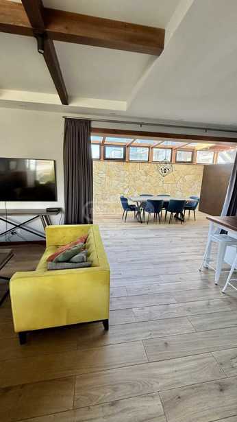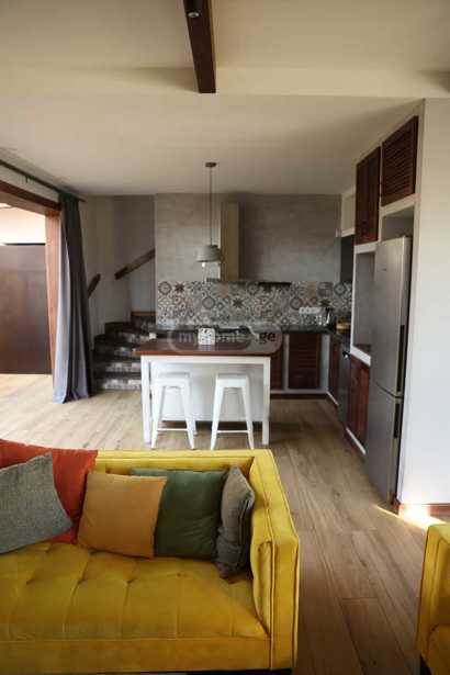 სახლის მახასიათებლები: • ერთსართულიანი სახლი (ბელეტაჟზე) • მისაღები ოთახი: 20 მ² • საძინებელი: 2 × 16 მ² • იზოლირებული სამზარეულო: 12 მ² • აბაზანა • შემოსასვლელი ოთახი: 8 მ² • ბუხრის ოთახი: 36 მ², აღჭურვილია სველი წერტილით და აქვს შესასვლელი ბაღის მხრიდან • სარდაფი: 20 მ² ტექნიკური აღჭურვილობა: • ინტერნეტი • ცენტრალური გათბობა • სათვალთვალო კამერები ბაღი: • მარადმწვანე დეკორატიული ბუჩქები, ყვავილები, ყინვაგამძლე ბალახები • მრავალი სახეობის ხეხილი • 38 მეტრზე ვაზის მსხმოვიარე ტალავერი • წვეთოვანი სარწყავი სისტემა სრული ფართი: 600 მ²