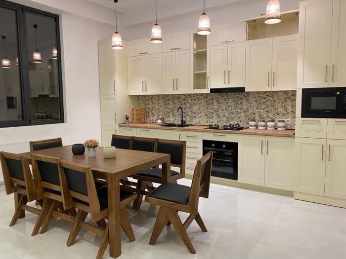 ქირავდება ახალი აშენებული კერძო სახლი, რომლის საერთო ფართობი 230 კვ.მ-ია და განთავსებულია 700 კვ.მ ეზოში. სახლში განთავსებულია 5 ოთახი, მათ შორის 4 საძინებელი, რაც იდეალურია დიდი ოჯახის ან მეგობრებისათვის. ახალი აშენებული სტატუსი უზრუნველყოფს კომფორტსა და თანამედროვე გარემოს. ფართო ეზო ქმნის მშვიდ და მყუდრო ატმოსფეროს, სადაც შესაძლებელია დასვენება და თავისუფალი დროის გატარება. სახლი გამოირჩევა ნათელი და ჰარმონიული სივრცით, რაც ყოველდღიურ ცხოვრებას კიდევ უფრო სასიამოვნოს ხდის.