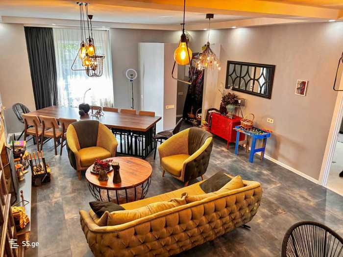 ქირავდება 5 ოთახიანი გამორჩეული დიზაინის კერძო სახლი ტოიოტას ცენტრის უკან 📍 მისამართი: ვახტანგ ჭელიძის 71, ავთანდილის კვეთასთან ახლოს. 🏢 სართული: 2 📐 ფართობი: 200 მ² 🌳 ეზო 550 მ² 🚪 ოთახები: 5 🛏️საძინებელი 3 🚿 სველი წერტილები: 2 🍽 იზოლირებული სამზარეულო 🚪 საგარდერობე ოთახი ⛲კარკასული აუზი ✨ სახლი მდებარეობს მყუდრო უბანში. აქვს დიდი და ნათელი ოთახები, ყველა საჭირო კომუნიკაცია და კეთილმოწყობილი სივრცე. ✅ სრულად აღჭურვილია ხარისხიანი და გემოვნებიანი ავეჯით, ჭურჭლით და ყველა საჭირო ტექნიკით ( 2 სარეცხი მანქანა, ჭურჭლის მანქანა, 3 ტელევიზორი, მტვერსასრუტი, უთო, ყავის აპარატი, მიკროტალღური ღუმელი, ელექტრო ჩაიდანი,მიქსერი, ხორსაკეპი მანქანა, კონდიციონერი) 🔥 ცენტრალური გათბობა 🚘 საპარკინგე ადგილი 1 ❄️ კონდიციონერი, ვიდეო სათვალთვალო კამერა გარე პერიმეტრზე. იდეალურია ოჯახისთვის