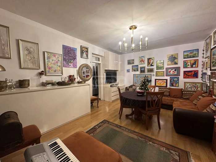 , ვყიდი ძალიან ნათელ, კომფორტულ, მყუდრო, ჩეხური პროექტის კუთხის ბინას, ზამთარში თბილია, ზაფხულში გრილი. იყიდება სრულად ავეჯით და ტექნიკით. ჩაშენებული კარადებით, ჩაშენებული საწოლით, ცალკე საძინებლით, კონდენციონერით და ცენტრალური გათბობით. მოვლილი სუფთა დახურული სადარბაზო(ჩიპით და სათვალთვალო კამერებით), ეზოც შლაგბაუმით იკეტება, პარკინგის ადგილით. სახლს აქვს დამხმარე ფართი (ჩულანი) კაპიტალური თაროებით და აივნით, ჩულანშივე დგას გათბობის ქვაბი. 0 სართულზე აქვს სარდაფი 8 კვ, პატარა ფანჯრით.