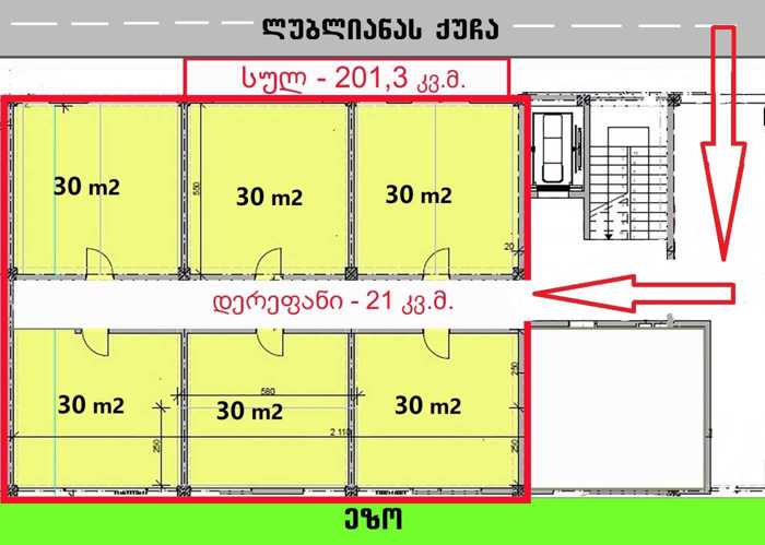 პირველი სართულია, სტატუსი აქვს საცხოვრებელი. გაკეთებულია 6 ოროთახიანი ბინა 30 მ2-ებად. ყველა ბინა რემონტით და ავეჯითაა. დენი და წყალი 6 აბონენტზეა, გაზი 1 აბონენტადაა. გათბობის ქვაბი 2 ცალია და წყლის გამაცხელებელი ქვაბი 4 ცალი. შეიძლება გადაკეთდეს საოფისედ და კომერციულადაც. 3 ბინა ქუჩის მხარესაა და 3 ბინა ეზოს მხარეს. ქეიეფსისთან შესახვევშია. სურვილის შემთხვევაში გამოვაყოლებ ორ მიწისქვეშა ავტოსადგომს და დაემატება 20000 $. $. შეიძლება გაიყიდოს 30 კვადრატის ჯერადად, ნაწილ-ნაწილ, თანასაკუთრებით.