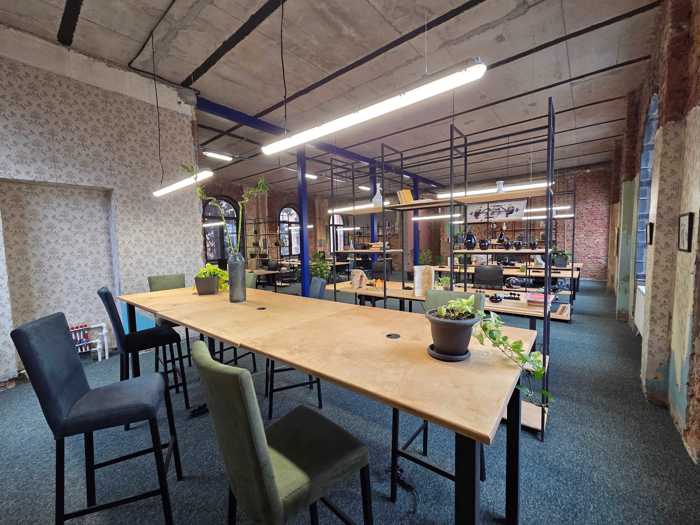 ფასში შედის დღგ, კომუნალური გადასახადები, დასუფთავება, ჰიგიენის საშუალებები. საოფისე ფართი მდებარეობს კომბინატის მეორე სართულზე. ფართი სრულად აღჭურვილია შესაბამისი ინვენტარით და ტექნიკით. 70 კვ.მ.-ის გარდა დამატებით შეგიძლიათ უსასყიდლოდ ისარგებლოთ საზიარო სამზარეულოთი და სველი წერტილებით. კომბინატი წარმოადგენ მრავალფუნქციურ სივრცეს, რომელიც აერთიანებს საოფისე და საზიარო სივრცეებს, სატრეინინგო დარბაზებს, კვების ობიექტებს და სხვა დანიშნულების ზონებს. შეთანხმების შემთხვევაში შეგიძლიათ მუშაობა დაიწყოთ იმ დღესე. მზად ვართ განვიხილოთ ფართის გადაკეთების ნებისმიერი ვარიანტი, მაგალითად, სურვილის შემთხვევაში შესაძლებელია ტიხრების დამატება.