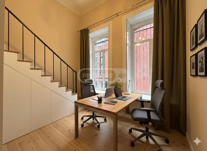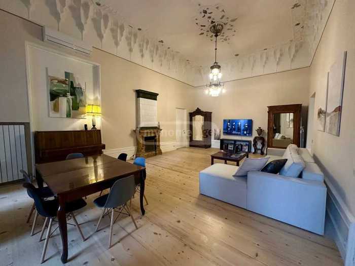 ეს ულამაზესი, სრულად აღდგენილი ისტორიული ბინა გთავაზობთ 100 კვ.მ. ელეგანტურ სივრცეს და შესაძლებელია გამოყენებულ იქნას როგორც საცხოვრებელი ბინა, ასევე ოფისი. ქონებას აქვს ფართო მისაღები ოთახი შთამბეჭდავი 4.80 მ სიმაღლის ჭერით. დეკორატიული ისტორიული ჭერი საგულდაგულოდ არის აღდგენილი და წარმოადგენს არქიტექტურულ თვალისმომჭრელ აქცენტს. ბინა ამჟამად სრულად კეთილმოწყობილია საცხოვრებლად და მოიცავს საწოლს, სასადილო მაგიდას, დივან-საწოლს და ახალ, თანამედროვე ტექნიკით აღჭურვილ სამზარეულოს. საძინებელი განთავსებულია ანტრესოლის დონეზე, რაც ქმნის ელეგანტურ და ფუნქციურ განლაგებას. სურვილის შემთხვევაში, არასაჭირო ავეჯის გატანა შესაძლებელია და სივრცის მოწყობა ოფისის ფორმატშიც (იხილეთ საცდელი ფოტოები). შენობის ეზოში ხელმისაწვდომია უფასო პარკინგი. წინასწარ პირველი და ბოლო თვის თანხის გადახდით
