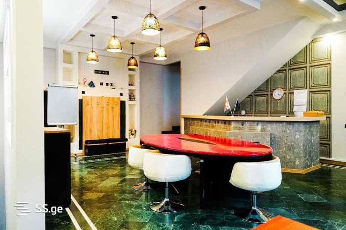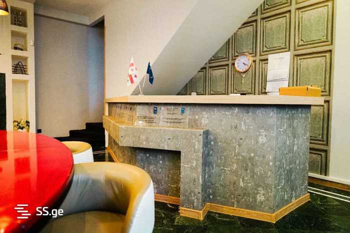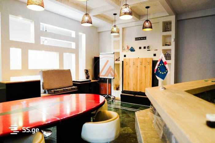 სამ სართულიანი ცარიელი შენობა. პირველ სართულზე დიდი მისაღები სივრცე, ორი გამოყოფილი ოთახი და სამზარეულო. მეორე სართულზე ერთი დიდი ზომის 75კვ მეტრის ოთახი და ასევე ორი შედარებით პატარა ზომის ოთახახები, ერთი აივანი ხედით ეზოზე . მესამე სართულზე არის ასევე ოთახები თავისი სველი წერტილებით. ოფისს აქვს დამატებით სათავსო ოთახები, 6სველი წერტილი განაწილებული სართულებზე. ფართში გამოყოფილია სალაროსთვის დაცული ოთახი. შენობაში დაქსელილია მაღალი სიხშირის ინტერნეტ გაყვანილობით. დამონტაჟებულია კამერები. ფანჯრები დაცულია რკინის გისოსებით. ეზოში არის საპარკინგე სივრცე ორი მანქანისთვის.