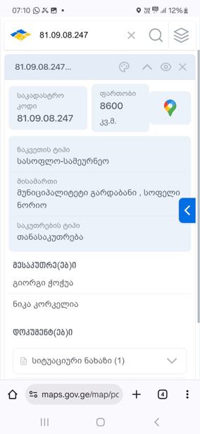 იყიდება მიწის ნაკვეთი 3000 კვ.მ ფართობით. მიწა განკუთვნილია მათთვის, ვისაც სურს საკუთარი სივრცის შექმნა და მომავლის ინვესტიცია. ფართობი იდეალურია სხვადასხვა დანიშნულებისთვის, რაც გაძლევთ თავისუფლებას თქვენი სურვილების რეალიზებისთვის. ნაკვეთი უზრუნველყოფს სიმშვიდეს და სივრცეს, რაც განსაკუთრებით მნიშვნელოვანია თანამედროვე ცხოვრების რიტმში. მიწის ფართობი საშუალებას გაძლევთ დაგეგმოთ და განახორციელოთ თქვენი იდეები, იქნება ეს საცხოვრებელი, აგარაკი თუ სხვა დანიშნულება. ეს არის შესაძლებლობა, რომელიც შეიძლება გახდეს თქვენი ცხოვრების ახალი ეტაპის დასაწყისი.