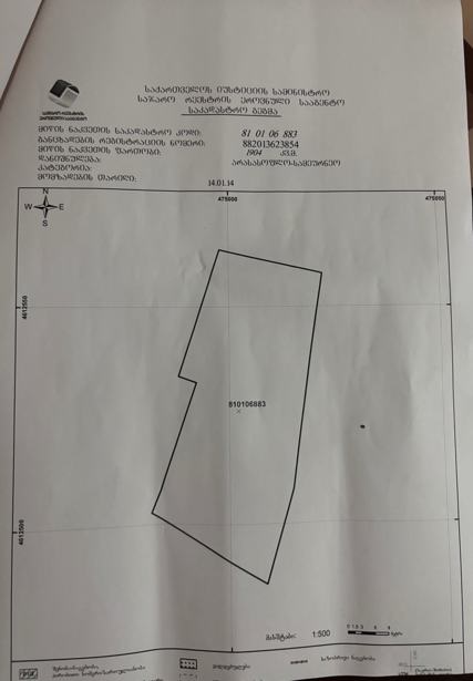 იყიდება სასოფლო-სამეურნეო მიწის ნაკვეთი . მიწის ზომაა 22/35 მეტრზე. არის გზის პირი და დასახლებულ პუნტქტში, სადაც მხოლოდ აგარაკებია