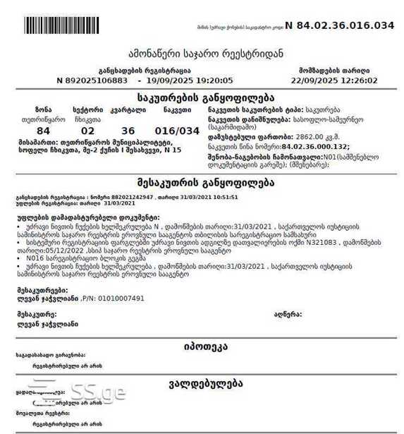 იყიდება 2862 კვ მიწა სოფელ ჩხიკვთაში თეთრი წყაროს რაიონი