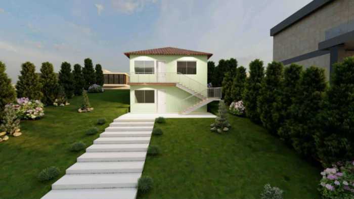 მიწიდან იშლება სივრცე, ლამაზი ხედებით. სახლის პროექტს ხედავთ სურათებზეც (შეგიძლიათ შეცვალოთ). გვეჩქარება